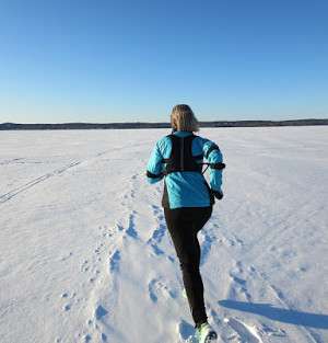 Aktivoi ylä- ja keskivartalon lihaksia Käyttöohjeeksi sain myös sen, että, liikkuessa olkapäät tulee pitää alhaalla ja rentoina, kuten muutenkin liikkuessa. Kyynärpäät tulisi pitää noin 90 asteen kulmassa koko ajan. Mitä laajempi käsien liike on, sitä tehokkaampi liivitreeni on. Ensimmäisillä juoksukerroilla jouduin hieman hakemaan käsien liikerytmiä, mutta nopeasti oikea rytmi löytyi. Heti ensimmäisistä kerroista huomasin, miten veri lähti kiertämään niska-hartiaseudussa, kun yläraajat tekivät töitä aktiivisesti kuminauhojen ansiosta. Tuli lämmin olo! Niska-hartaiseutu ja yläraajat väsyivät ensimmäisillä lenkeillä, mikä johtui osittain siitä, että käsieni lihasvoima on heikko ja toisaalta päätetyö jumittaa niska-hartiaseutua. Viime vuosina olenkin panostanut ylävartalon lihasvoiman ja liikkuvuuden lisäämiseen. Liivin käyttöönoton jälkeen olen huomannut pientä lihasvoiman lisääntymistä yläraajoissa. Lisää energiankulutusta, verenkiertoa ja aineenvaihduntaa Seurasin energiankulutusta vertailemalla aikaisempien lenkkien ja ns. liivilenkkien enrgiankulutusta sykemittarin kautta. Ihan eivät juoksut olleet vertailukelpoisia, vaikka matka ja vauhti olivat samoja, mutta sääolosuhteet eivät. Parhaiten enrgiankulutusta voisi seurata ja verrata juoksumatolla tai hallissa juostessa. Olisi myös kiva tietää, millaisia eroja tulee verrattaessa sauvakävelyn ja liivitreenin energiankulutusta. Oma energiankulutus oli hieman suurempaa liivilenkeillä kuin normilenkeillä ja verenkierto vilkastui sitä enemmän, mitä tehokkaammin ja laajemmin käytin käsiä juostessa. Vastuskuminauhoilla sai lisää tehoa mäkivetoihin, loikka- ja porrastreeneihin.